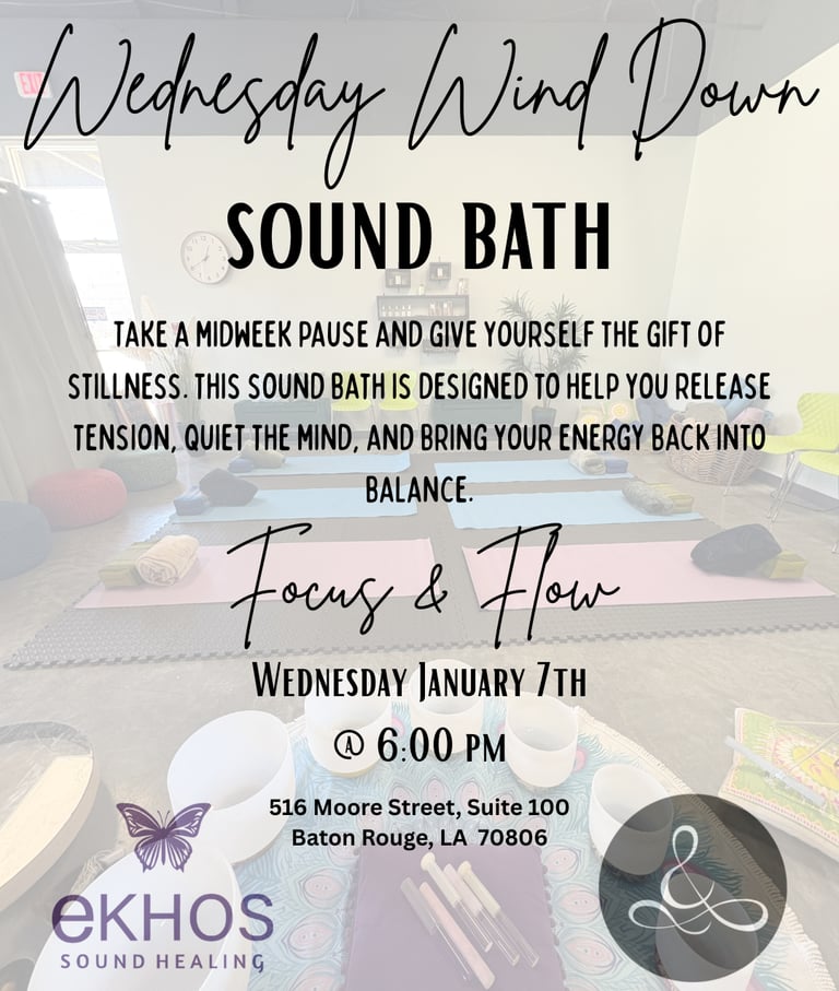 Take a midweek pause and give yourself the gift of stillness. This restorative sound bath is designed to help you release tension, quiet the mind, and bring your energy back into balance.
