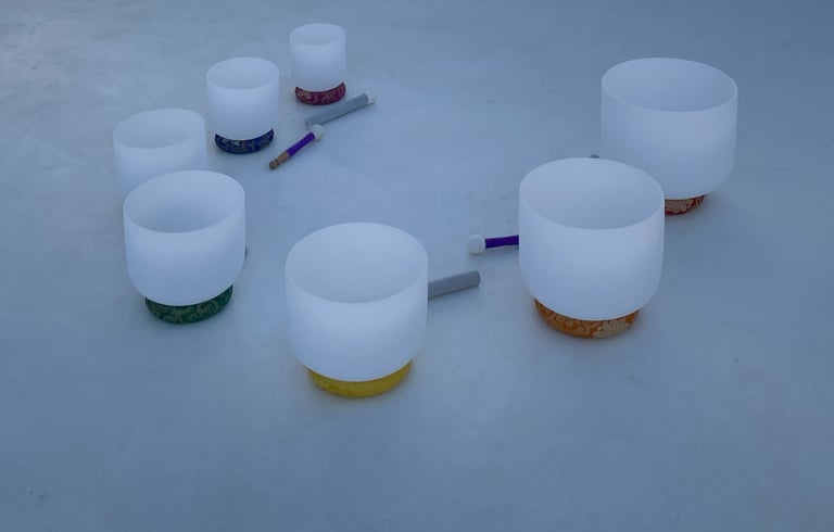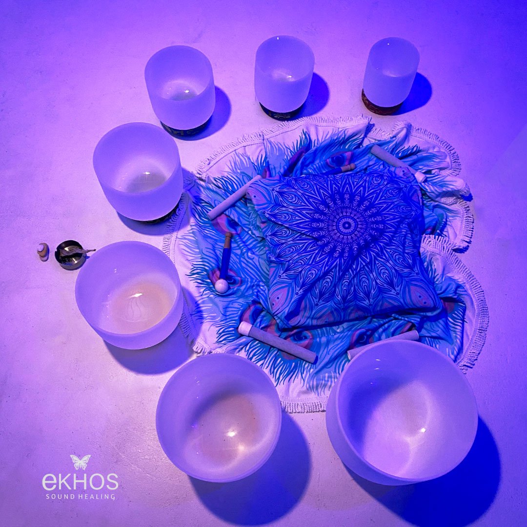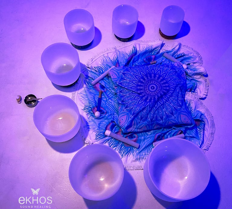 A sound bath is a deeply immersive, meditative experience where participants are “bathed” in soothing vibrations to promote relaxation, healing, and balance. At Ekhos Sound Healing, I use crystal singing bowls to create a soundscape that helps quiet the mind, release tension, and restore harmony to the body’s energy centers. The rich, resonant tones of the bowls work on a vibrational level, supporting the nervous system, reducing stress, and enhancing mindfulness. Whether you're seeking emotional release, clarity, or deep relaxation, a sound bath offers a gentle yet powerful way to reset and realign. All you need to do is lie back, breathe, and allow the sound to wash over you, bringing you into a state of peace and well-being.